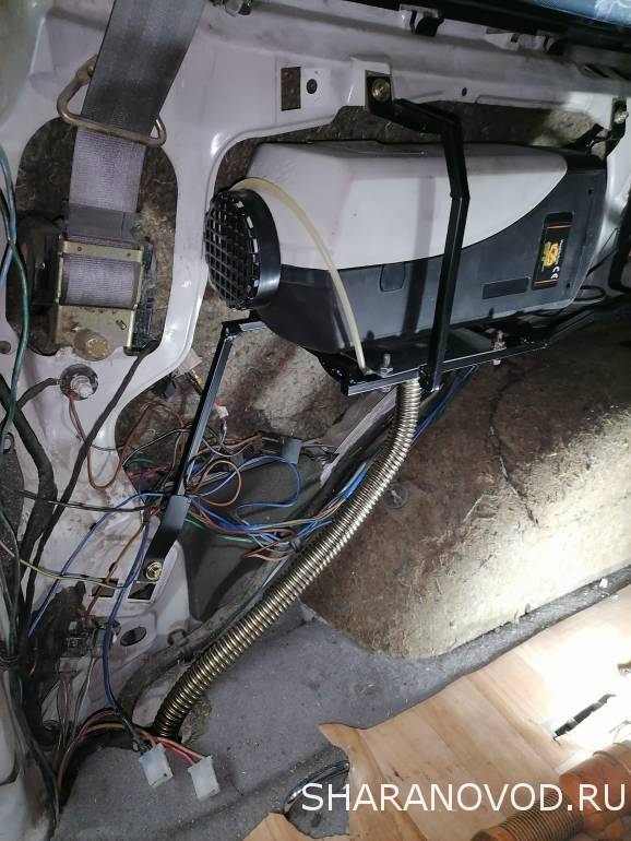 По установке, проблем особо не было, солярка - от врезанного тройника из магистрали на штатный дозировочник жидкостного котла (у мну он под передним пасс сиденьем), топливная трубка под настилом на скелет левого заднего крыла, там же и дозировочник фена... Для фена сварил из профиля (квадрат 10Х10 мм) рамку с креплением на штатные места крепления отопителя, всё делалось "по месту", т.е. без предварительных замеров и чертижей и пр. ... Труба выхлопа проложена в предварительно сделанное отверстие в полу, только один нюанс - НЕ около арки крыла, т.к. там профиль под днищем, несколько дальше, Ф отверстия мм, примерно 30, для того, что бы исключить прямого контакта днища с выхлопной гофрой фена... через термоизоляцию...Настил в месте выхода выхлоп.гофры - подрезал, там немного требуется...