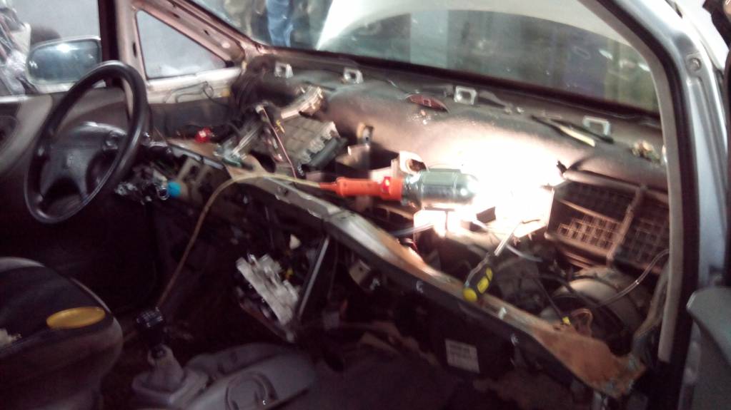 FAGUNDOS72, Отсоединил я все еще вчера,вынуть не смог. Сегодня посмотрел на все это безобразие,покумекал и раскрутил болт центровой на регулировке рулевой колонки и опустил все это хозяйство как говорят "без шума,без пыли",и то торпеда еле вышла. Крячил один и вынимать пришлось через левую дверь,так как правая не открывалась до конца из-за полок в гараже. И вот такое безобразие я там нашел...