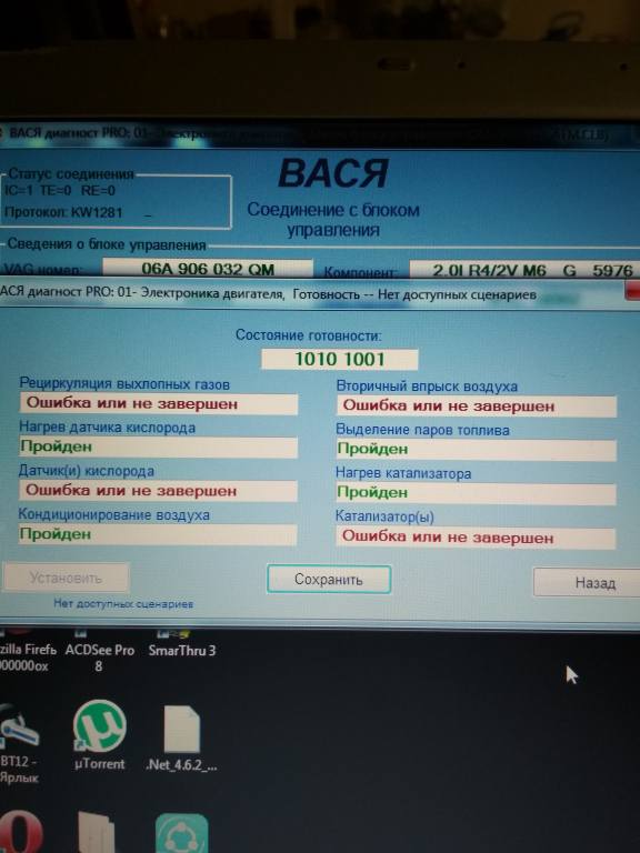 и еще, постоянно выпрыгивает чек, на холостых немного троит в кодах неисправности только обеднение смеси а готовность блока двигателя выдает такое..