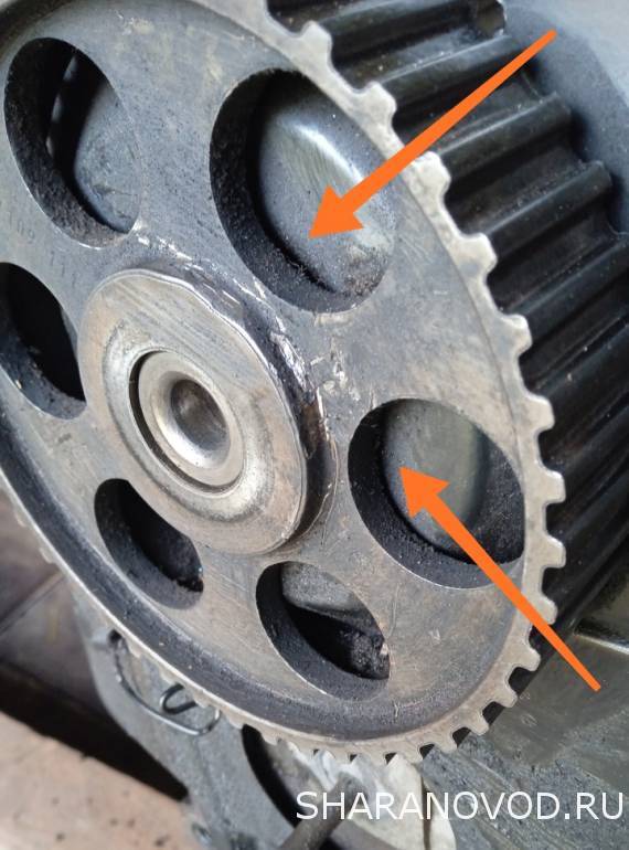 Если только со стороны распредвала стучать по этому кожуху в районе посадки шкива.