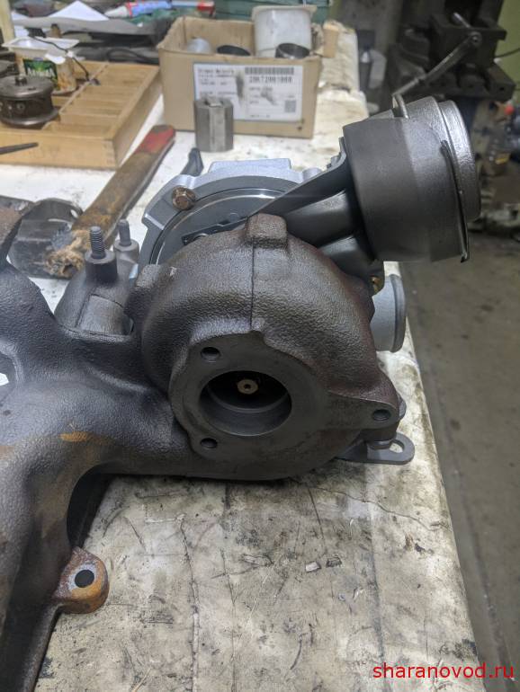 Долго с турбиной возился, подгоняя выход холодной части. Штатный вбок был, а на гибриде вниз и прям во фланец коробки смотрит