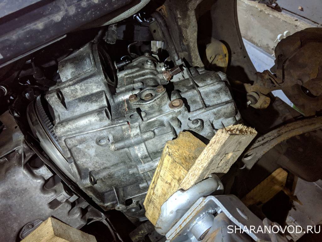 А вот с раздаткой я наипался. Прикрутил сначала кронштейн, потом не смог раздатку одеть. Открутил его. Прикрутил раздатку, а кронштейн потом не лезет, в турбину упирается