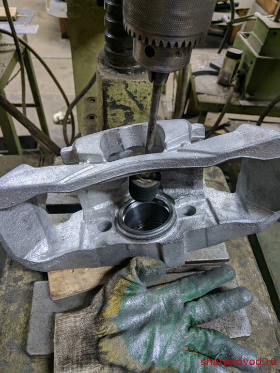 Вопрос встал чёт манжету запрессовать. Ничего не попалось, как не искал, пришлось взять кожух от чего то и сточить фланец Вроде все красиво, но манжета не садилась нормально. Оказалось, что оправка слишком высокая и затирала о суппорт, не вставая соосно