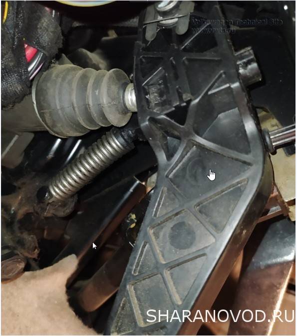 Пытался снять педаль сцепления . ,что бы убрать выработку под штоком гл цилиндра на педали .. Провозился час наверное и не смог снять педаль . Снял стопор и кольцо. А дальше пробовал снять педаль с оси ,но в нее же заходит шток от гл циллиндра . На этом всё и закончилось .