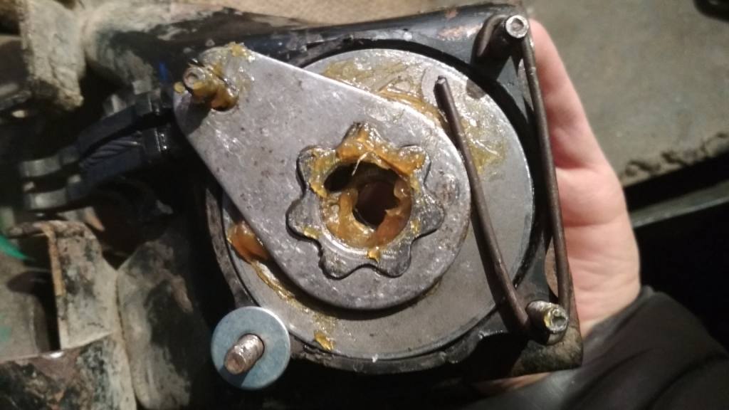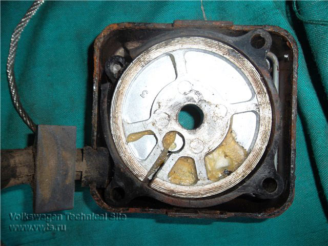 Сборку произвел немного в другом порядке: Вставил трос в вал, одел пластиковый кожух, поставил вал на площадку корпуса, вставил снизу болт (тот на который одевается пружинка и стопор), одел пружинку и стопор на него, пружинку завел за выемку на площадке, вставил шестеренку с фиксатором и болт для фиксатора, вставил два болта на которые одевается пружинная скоба и одел саму скобу.