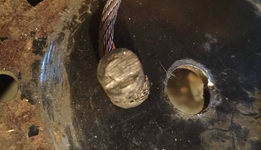 Бобышку на тросик делал так: взял болт нужного диаметра, отпилил нужной длины, просверлил в нем сквозное отверстие для троса, и просверлил отверстие сверху для болтика, вставил трос, зажал болтом и отрезал лишнюю часть зажимающего болтика: