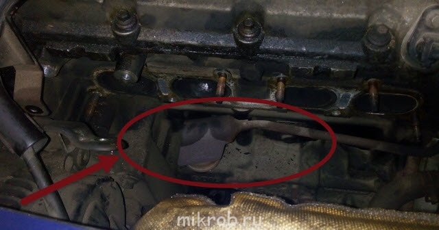 Возвращаюсь снова к системе вентиляции картера , т.к. прогретый мотор заводится и сразу глохнет = есть подозрения на подсос воздуха , проверил весь впуск и остался только вот этот тракт . Схема похожа на мою , только не найду я резиновый шланг около блока , который одевается на клапан . В нете нашёл фото моего движка и со снятым выпускнымколлектором , но там тоже стальная трубка похоже приварена к самому маслоотделителю около блока .Вот фото .Так где же резиновый патрубок ? Может он за ним или под ним расположен .Нет желания всё разбирать и покупать без прояснения вопроса .Кто знает ответ ?