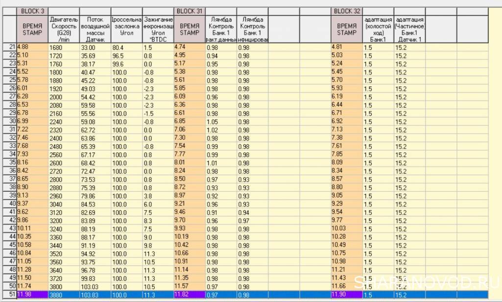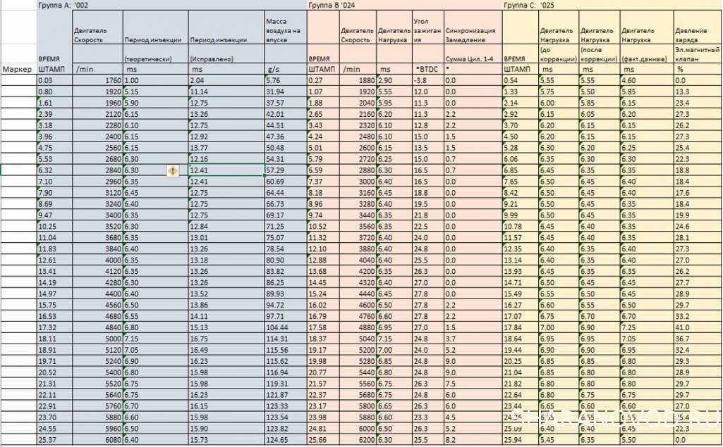 Логи бензиновых двигателей (снятие и чтение)