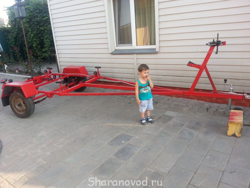 Вот, батя себе небольшое хобби устроил на пару недель. Сделал прицеп на лодку + лодку обрезал, переделал (жестянку). Почему красный? Потому что есть красный обычный прицеп (Бобренок), вот с него номерок перекочует (перебьется) на эту лодку, т.к. регистрировать этот лафет - гемор еще тот.