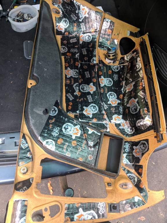 После обмятия надо ещё укатать их виброй. Был выбран джокер, имеющий максимальную адгезию из всех вибр. Местами в 2 слоя Вчера проглядел и не подкелил крепление, пришлось по месту склеить и поставить, потом срежу скотч Добавляем антискрип герметон 7 Чутка на 5мм всё-таки подрезаю ковер и немного утоньшаю выдерживанием войлока. Обивку вниз опустить треба. И ставим Другая сторона аналогично все