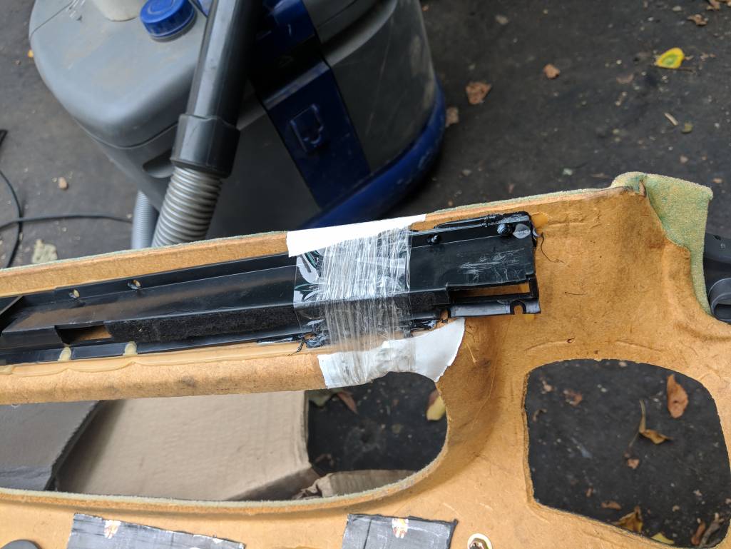 Часть проф Ф наклеена на внутреннюю часть двери изнутри. Стеклу не мешает, а толщину экономим Защитный пластик поклеил герметиком, а то дребезжать мог на своем крепеже Далее задул все найденным в загашнике тектилом