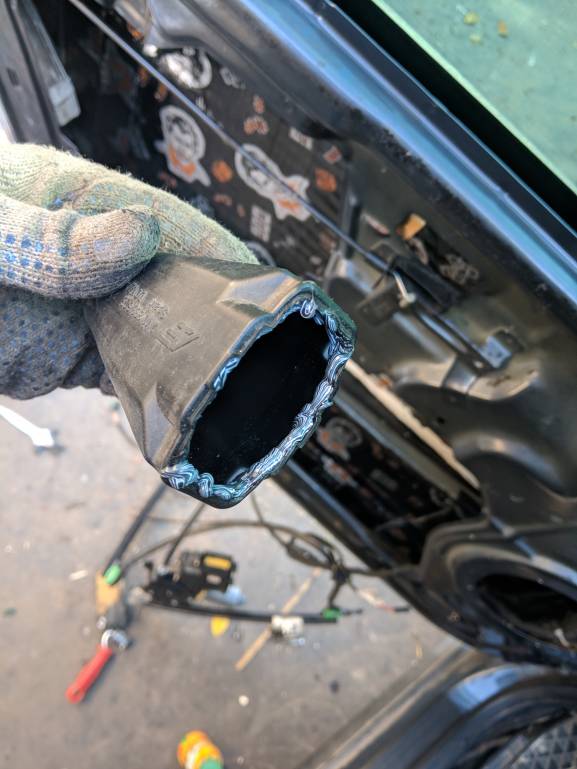 Перешёл ко 2 двери. Там все аналогично. Жгут снял на ремонт , так как левый ремонтировал в свое время по месту, а раз такая оказия, проще на столе Вот в эти отверстия наверно протянуть новую проводку, да?