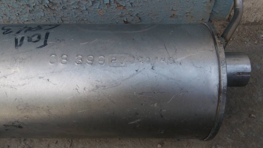 Далее где то в мае столкнулся с проблемой шума под вторым рядом сиденья. Загнал на подъемник и оказалось что резонатор у меня дырявый. Возможно где то давал задним ходом и зацепил немного ( да и сама банка уже прогнила) Вот его партномер ( само собой он не оригинал. 18 лет машине