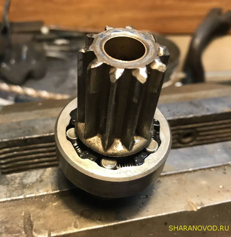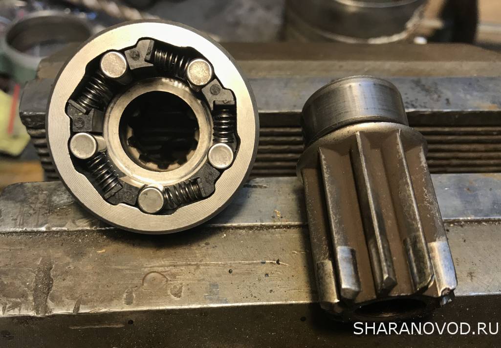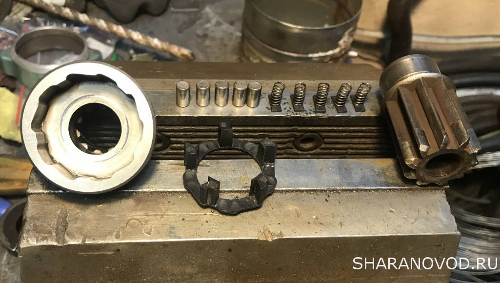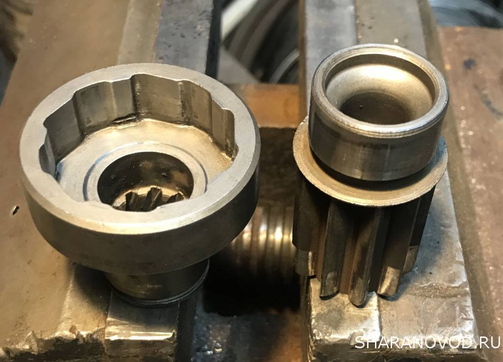 Ремонт бендикса, тому у кого есть желание и возможность. Без предисловий. Снимаем все лишнее. Развальцовываем кожух и сбиваем его. Бендикс разбирается на две половинки. Вынимаем все внутренности и моем. Смазка с пылью от диска сцепления, превратилась в пластилин, от этого все проблемы. Выработок практически нет. Собираем в обратной последовательности, смазываем и завальцовываем. С фото думаю будет понятно.