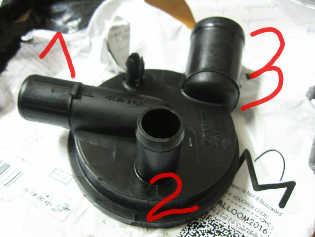 Значит так... Условимся, что у клапана три "выхода" под номерами на рисунке. Подав(пылесосом) разряжение на выход 1 по правилам выходы 2 и 3 должны перекрыться относительно выхода 1. Как в этом убедиться? Засасывать ротом и язык должен прилипнуть к выходу. Хорошо, это относительно выхода 1. Но выходы 2 и 3 соеденены между собой. Значит , для проверки разряжения на одном из 2 или 3, один из них нужно пальцем затыкать. Верно? А если не затыкать, то они между сообой должны продуваться. Верно, А если не создавать разряжение на 1, то между 2 и 3 продуваться не должно,