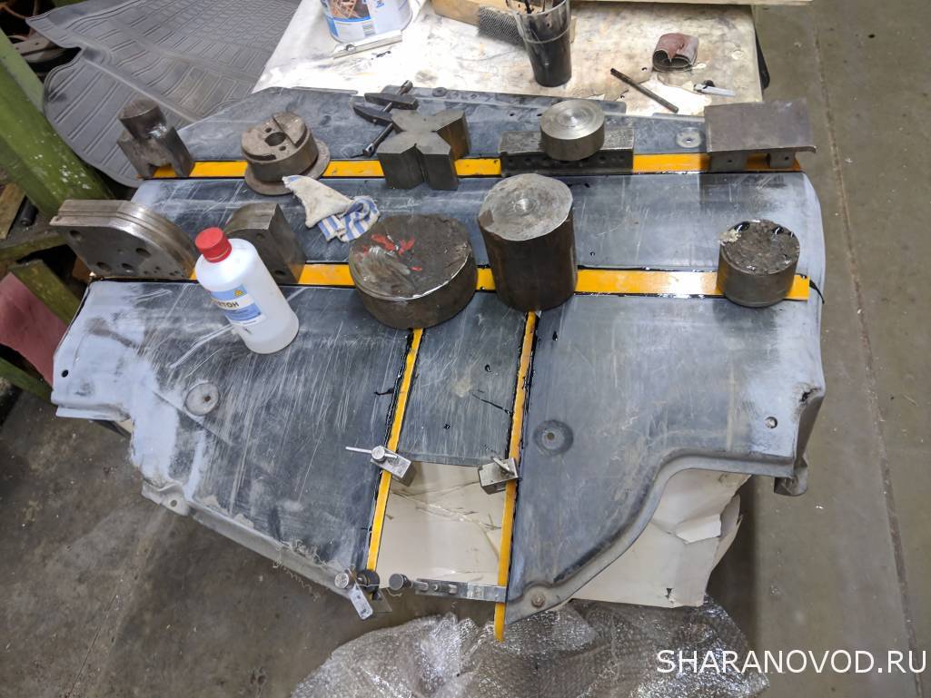 В районе поддона картера тоже сделаю усиление изнутри, чтобы защита прижималась к картеру при наезде на препятствие, но защищала его.