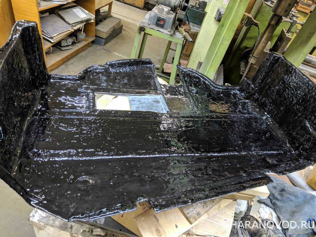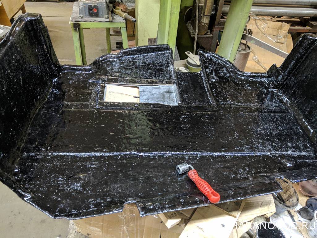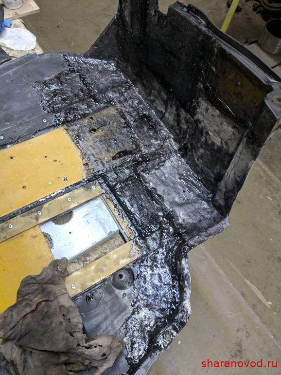 Защиту проклеил изнутри, шлифанул неровности, заматиповал и залил тонким слоем эпоксидки с маршалитом (что было под рукой) Когда почти схватилась прокатал валиком, чтобы не была такой гладкой и чутка разровнял наплывы. А то шумка отклеиться от глянца. Но я все-равно 88 клеем пройдусь под поклейку