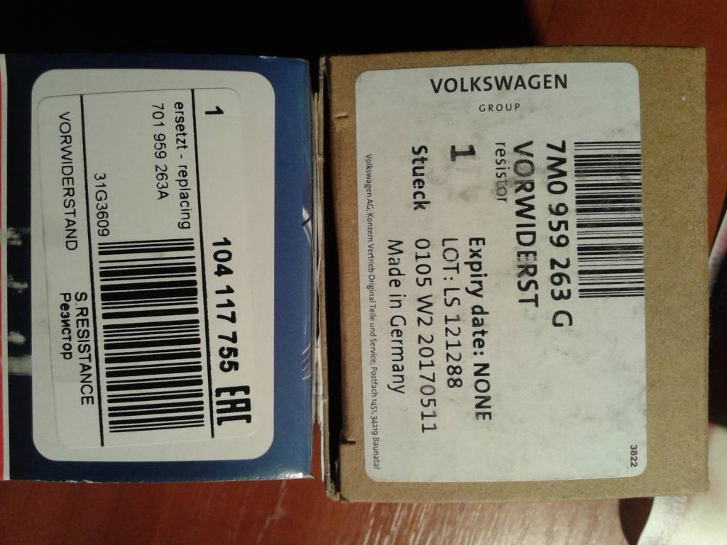 Замерялось для сравнения сопротивление у нового TopRan №104117755 и нового VAG 7M0959263G: