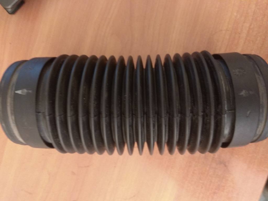 Один человек подсказал, что есть похожее у Газели. Сходил в магазин, подобрал и купил патрубок (номер 3105-1109192). снять с пластиковых колец старый рукав теоретически можно выкручиванием, а по факту всё рвётся в хлам. теперь, когда кольца свободны, гофру вставляем внутрь (садится довольно плотно) и получаем функциональную и эстетически приятную конструкцию дела на 2 минуты. Газелевский патрубок 4$ (конкретно в этом магазине, а так и дешевле есть)