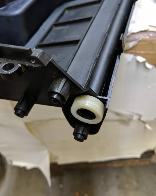 Также замечено, что на заслонках актуатор доводит до трещины посадочное место заслонки, куда он вставляется. И если на моей была небольшая, то на доноре раскрыта конкретно. Заслонка печки в принципе проходит сквозь пластик и далеко не раскроется, оставил сою заслонку так, а вот на заслонку испарителя сделал втулочку на всякий случай.