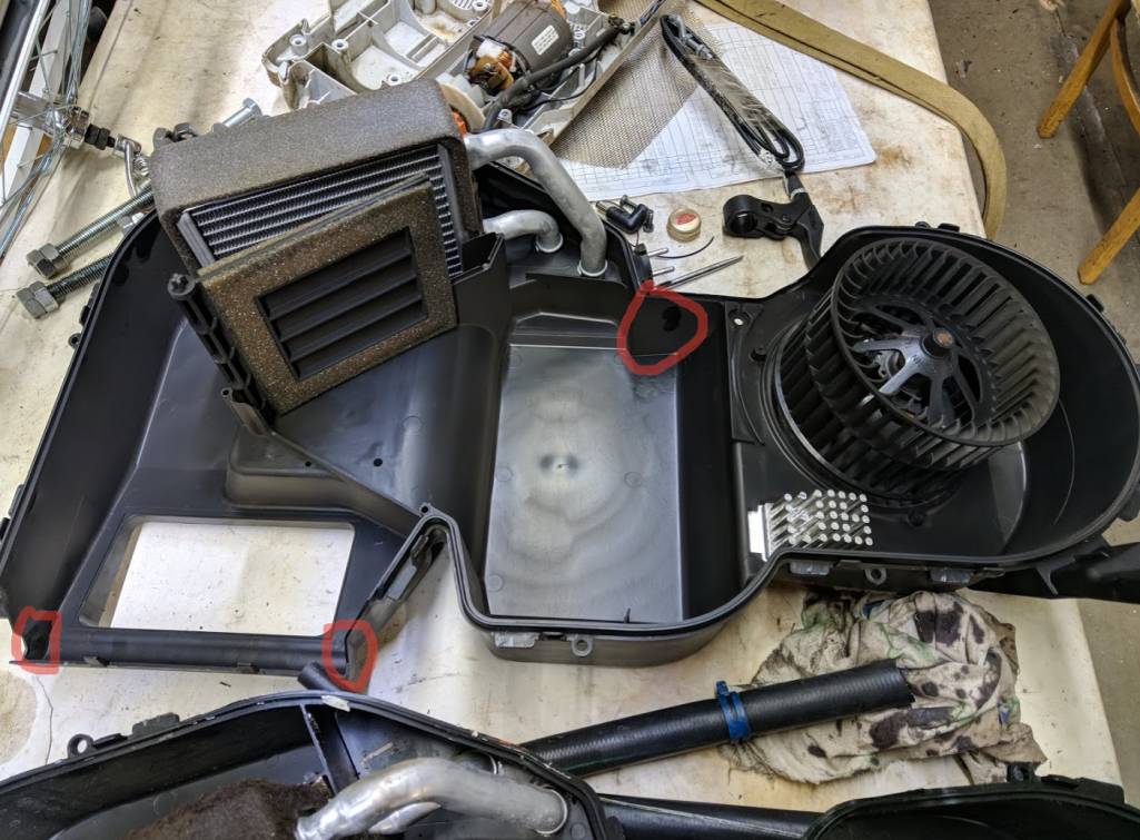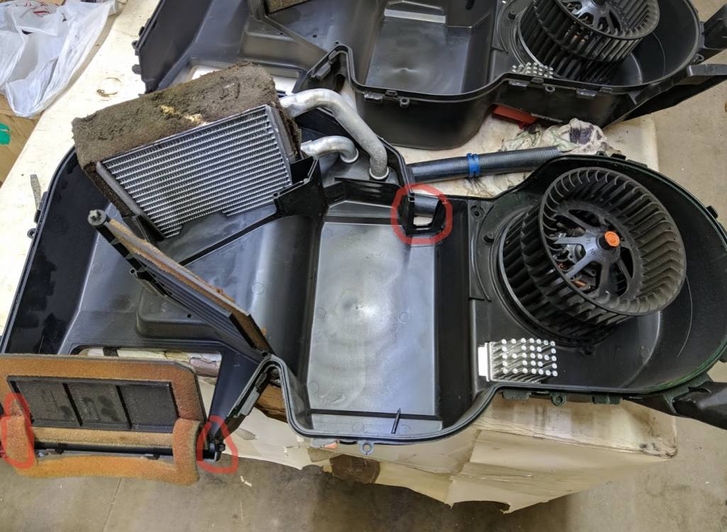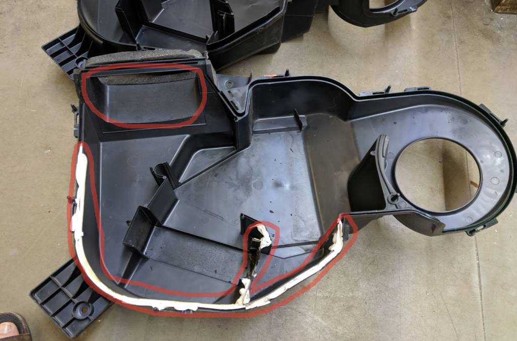 Нижняя половинка имеет паз под уплотнительную резинку испарителя, который делается при литье вставкой, но можно и так сколхозить. Это самое большое отличие, потому как еще нужно просверлить 2 отверстия под заслонку, что совсем не сложно. Проблема только в том, что надо иметь еще сам актуатор и заслонку, поэтому проще купить донора