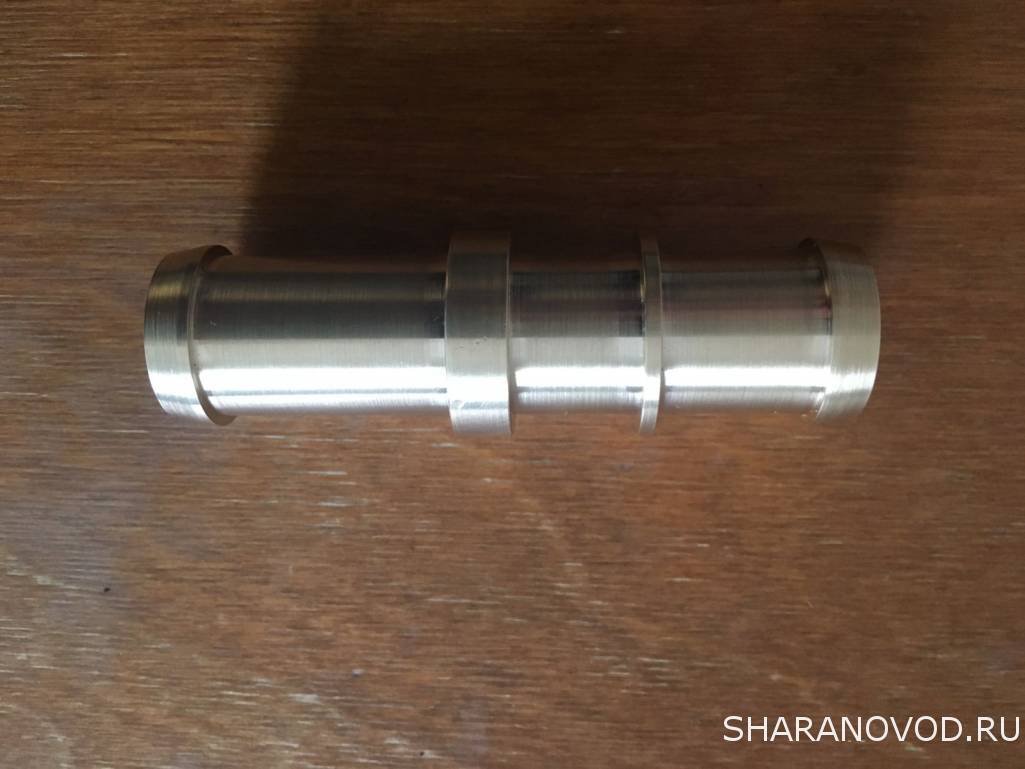 Купил машину. Поехал, после езды по трассе упёрся в затор на дороге. В салоне резко запахло антифризом. Остановился, обнаружил, что слетел патрубок на который указывал топикстартер. При этом пластиковый штуцер уже был сломан и предхоз натянул патрубок глубже и зажал хомутом. Я конечно расстроился, т.к. думал, что это торчат вводы от радиатора отопителя салона. Но благодаря этой теме понял, что это промежуточные патрубки. Снял патрубок. Узнал цену - от 3500 до 6500 руб, и ждать 5 дней. Мне нужно было ехать на регистрацию ТС (срок уже поджимал). Поэтому принял решение изготовить этот штуцер на токарном станке. Что получилось можно увидеть на прилагаемом фото.