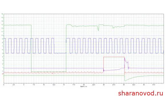 На второй осциллограмме ДПКВ и импульс заряда катушки зажигания. Длительность импульса заряда зависит от напряжения бортовой сети и оборотов двигателя, это зависимость прописана в ЭБУ двигателя.