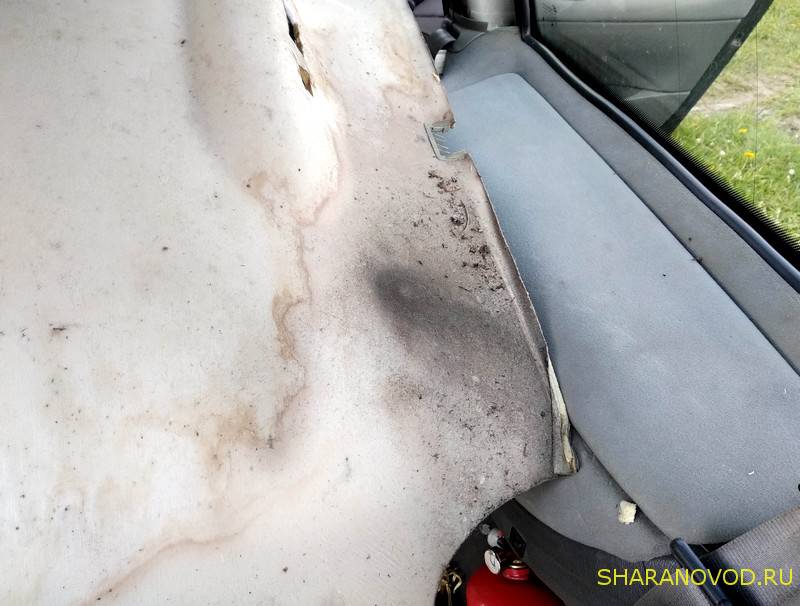 Дошли таки сегодня руки снять потолок, ибо после прошлого дождя опять все мокро в правом заднем углу