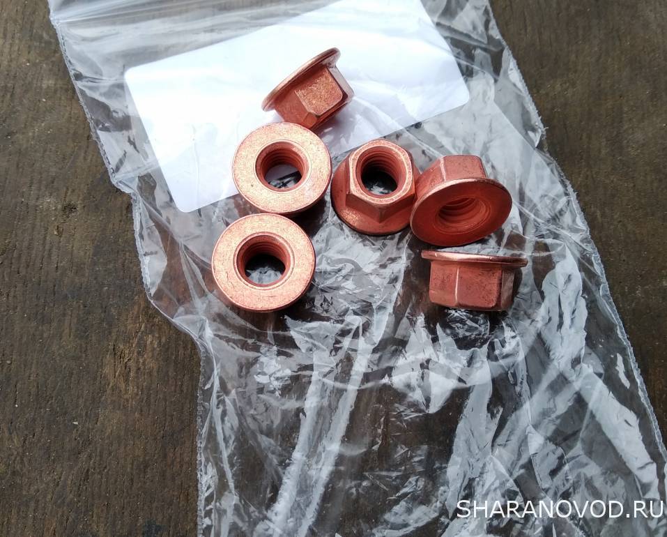 По каталогу не смотрел, но там вроде должны быть самоконтрящиеся гайки, овальные. Сегодня не нашел, поеду завтра в другой магазин. Хотя были с пластмассовым ободком, но я чета не захотел таки ставить. И тем более обычную с шайбой и гровером.