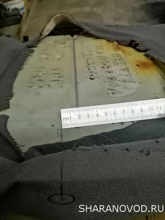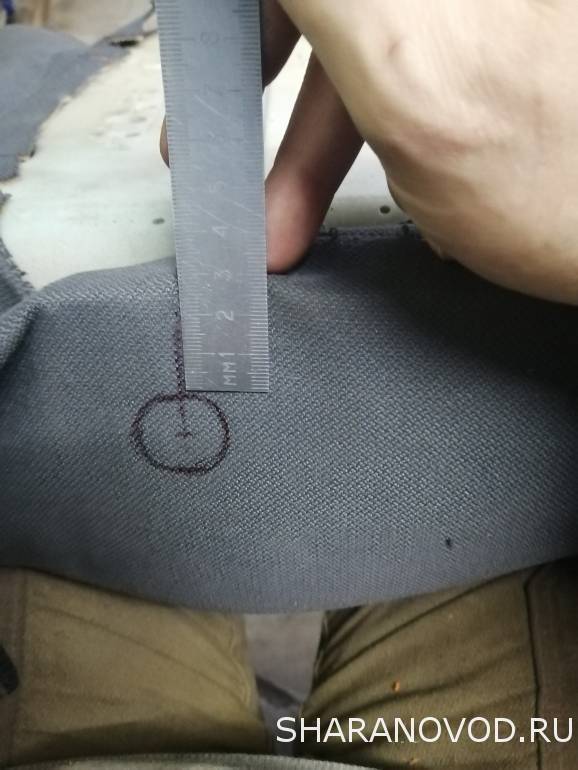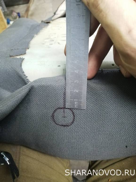 Собираем кресло и делаем отверстие в поролоне и обивке 22 мм. Вырезал канцелярским ножом.
