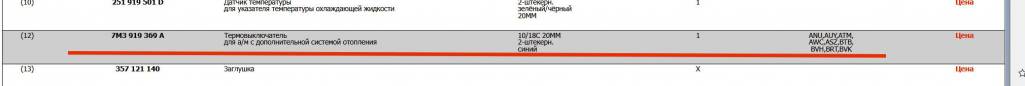 Нашел еще одну интересность. Оказывается есть специальный термодатчик на двигателе, который как раз и служит для отключения доп отопителя, он работает на замыкание? (по другим источникам он замыкается кратковременно) на температуру 85 градусов. По этому номеру он бьется в двух исполнениях Причем судя по каталогу второй на 10/18 градусов...