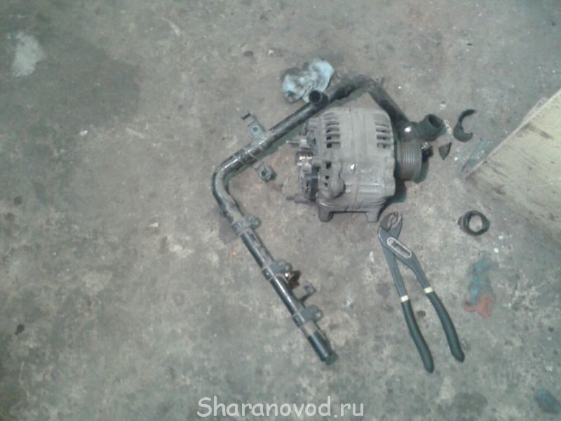 После этих несложных манипуляций генератор снимается с кронштейна, если сниматься не хочет, стоит аккуратно помочь ему монтировкой или иловой отверткой.