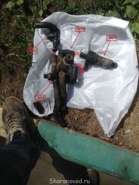 40 (сорок) рублей, был ну оооочень счастлив. Поз. №43 менять не стал, для этого пришлось бы снимать трапецию стеклоочистителей, иначе не подлезть, а время было позднее и утром нужно было ехать. Установил все, залил антифриз, прогрел, проверил на течи, а утром поехал. За день пробег 450 км, все ОК , все сухо.