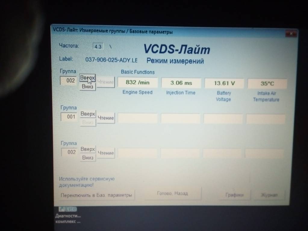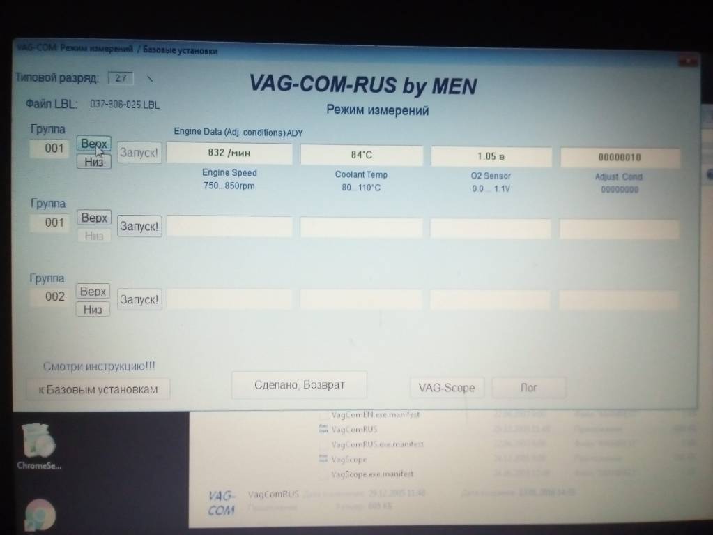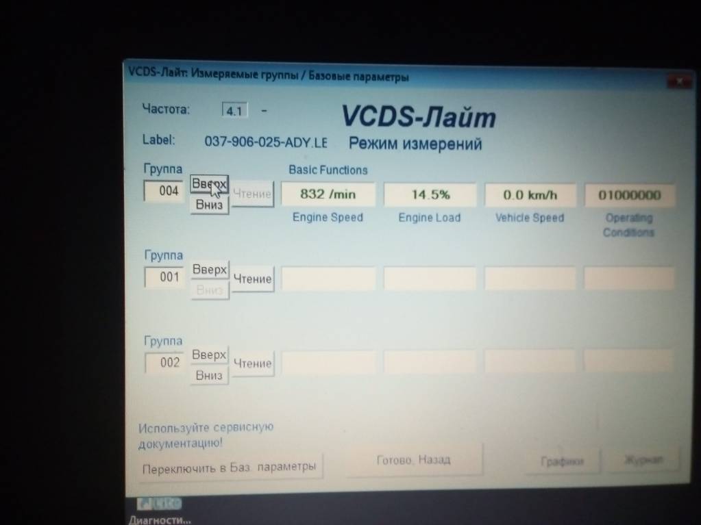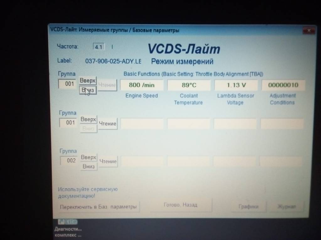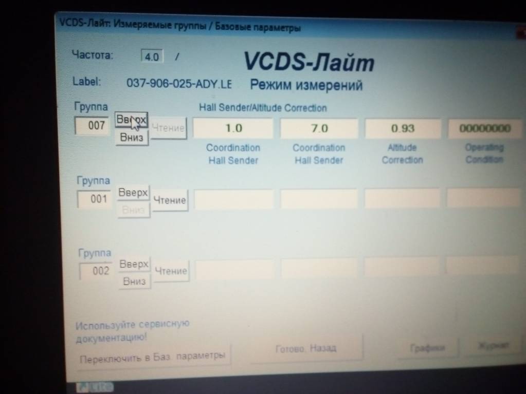 Я когда адаптировать пытался заслонку, машина была не заведена, А только включено зажигание, набираю 001 в адаптации выдаёт ошибку, А сразу в базовых параметрах 001 выдаёт просто параметры, те же,что на измерительных группах. А эти фото диагностики моего двигла, может кто знает какие должны быть и какие у меня, это я по поводу работы моей машины, в моей программе нет какие должны быть, может прога слабая или какая то не та или мозги у моей машины,или у меня,)) не те. А про код, который в другой прогоамме запрашивает может знаешь что?