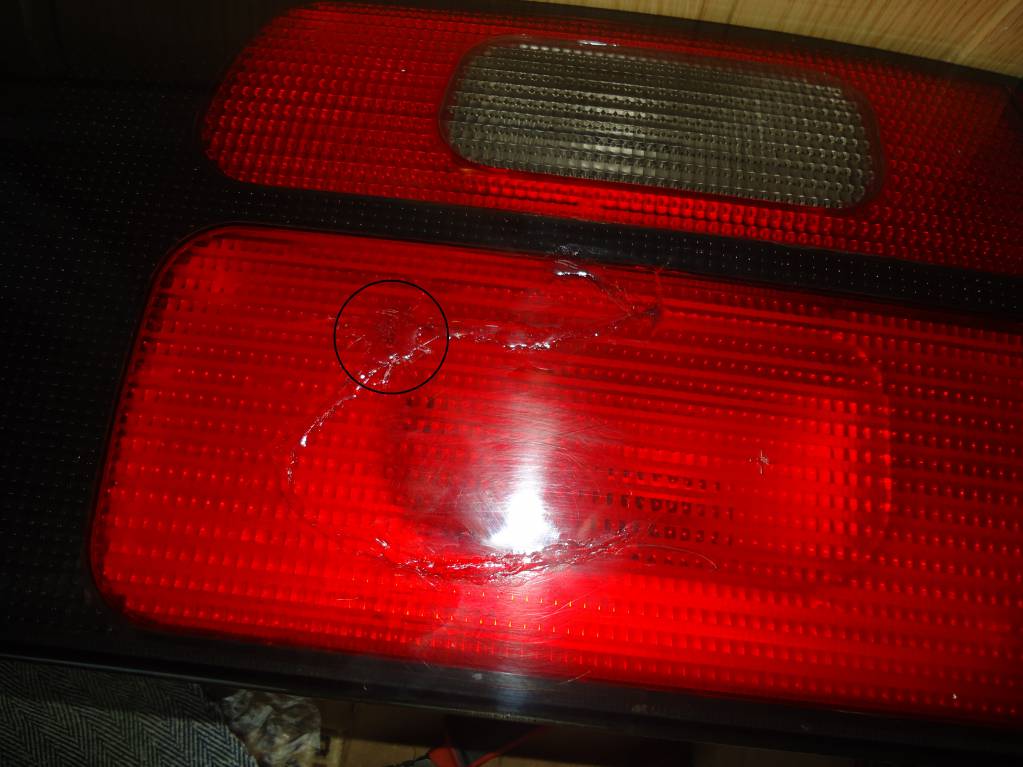 Кружком обозначено место сквозной дырки, ну и дышащяя трещина в виде буквы G. Решено было клеить дихлорэтаном (после затвердевания создаётся монолит (по этому поводу дофига в интернете инфы).