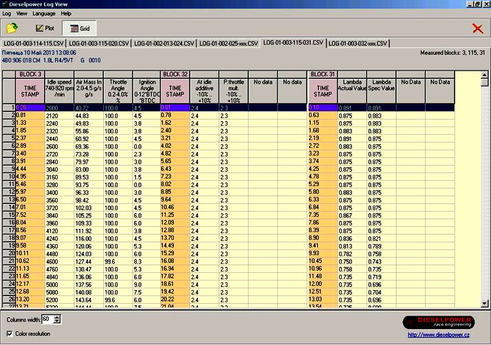 На практике правильной смеси нет - чаще в логах наблюдается обеднение, что говорит о проблемах с подачей топлива, не корректных показаниях ДМРВ, возможной негерметичности турботракта и т.п. Хорошие данные ЛЗ примерно такие: на минимальных оборотах: 1300-1500 – 0.950, постепенно «богатеет» до 0.750 в пике – при 5700 об/мин.
